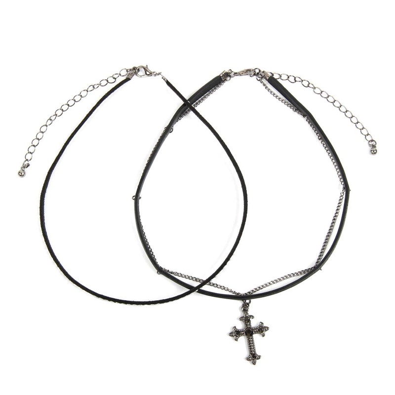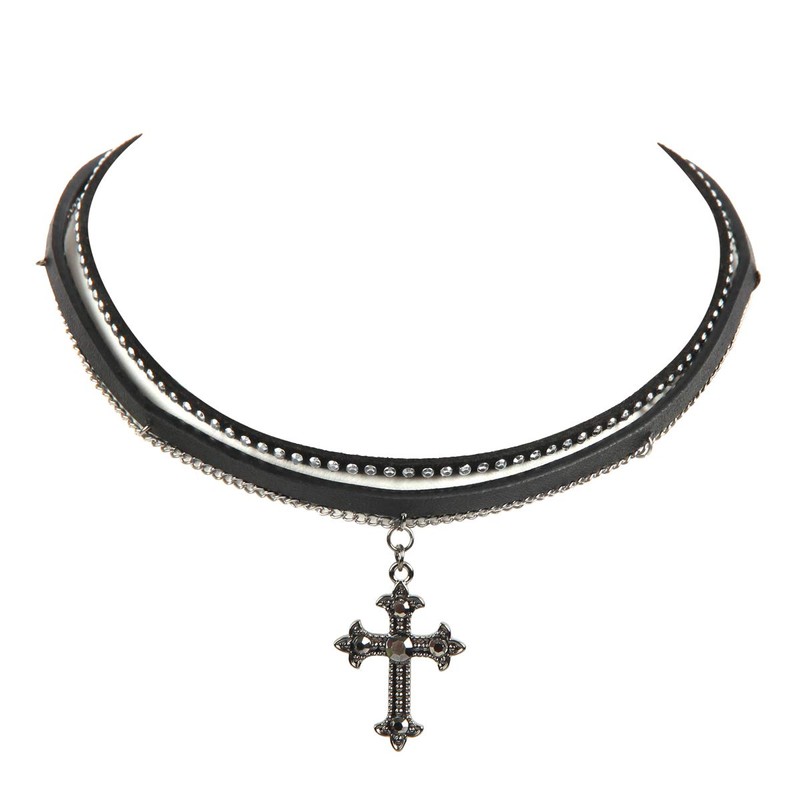 RIAH FASHION Goth Punk Vintage Costume Necklace - Heart, Cross, Moon & Star Choker, T-Rex Dinosaur Skeleton Statement Bib Unique Fun Novelty Gift (Cross Charm)