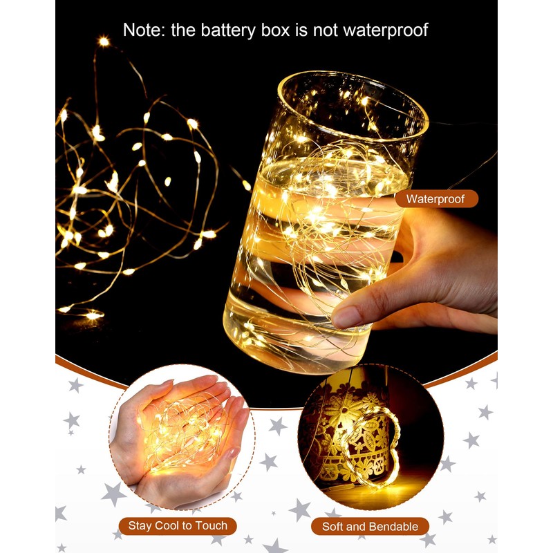 - Flexible to Wrap: the battery powered light strand is mainly made of copper wire, which can be easily bent into the shape you desire, low voltage and heat insulated, safe to touch and use, it is also flexible and long enough for you to wrap your bottles, garlands or others to illuminate the area and add beauty