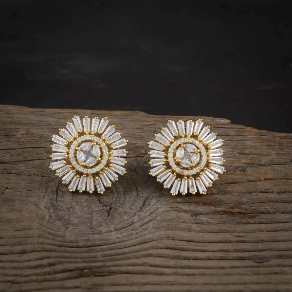 Riara Women CZ Stud Earrings Gold Plated Ear Jewelry Cubic Zirconia Floral Earring