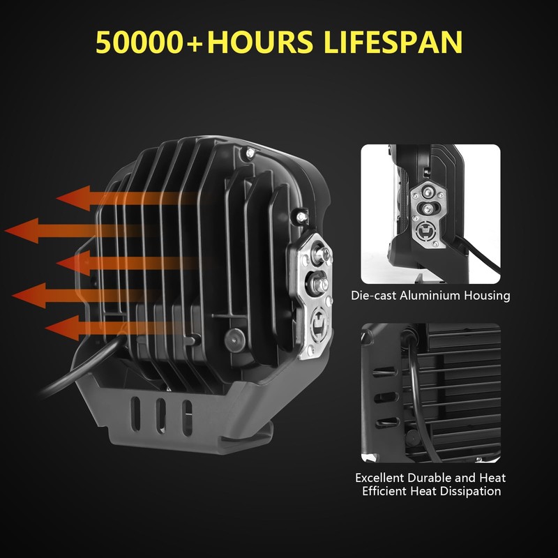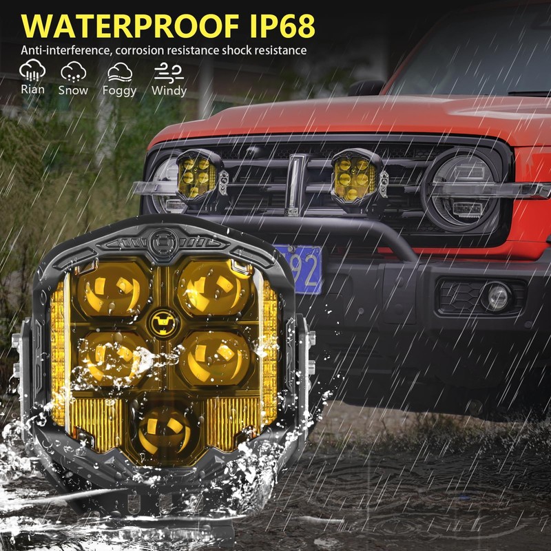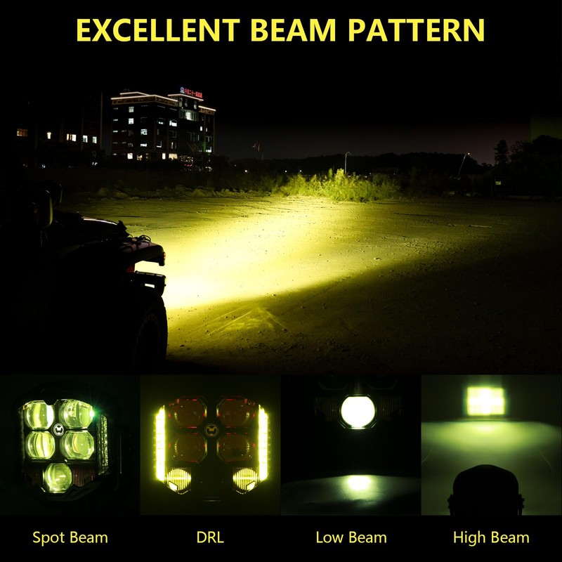 - 【Excellent Lighting Brightness】 - RIASDY Off road light consists of 5 larger projector cups (4 spotlights + 1 light), can adjust high beam and low beam, high power output, high visibility up to 100000 cd, the side shooter light have 7 pcs 3030 led lamp beads, at a distance of several hundred meters for you to expand the field of vision, effectively eliminate blind spots, light up your off-road adventure and improves your driving safety!