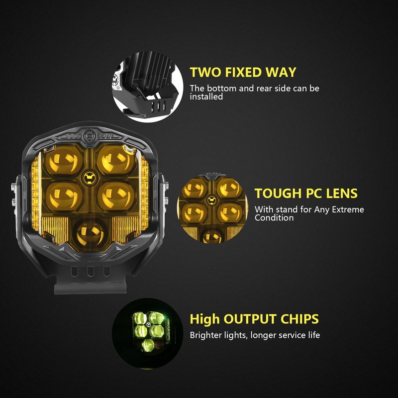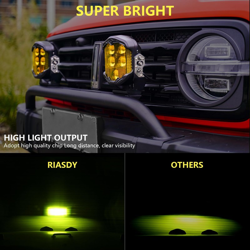 - 【Superior Quality】Riasdy amber fog lights is made of high-quality black paint and high-quality aluminum housing. It is equipped with efficient heat dissipation integrated system, which can quickly and efficiently dissipate heat and make a lifetime over to 50,000 hours.