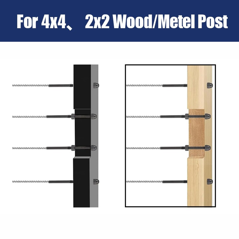 - Wide Application: Riayer black 1/8" cable railing tensioner is suitable for 2"x2" to 4"x4" wood, metal, and aluminum posts. It is perfect for both indoor and outdoor applications, adding aesthetic appeal to your railing projects.