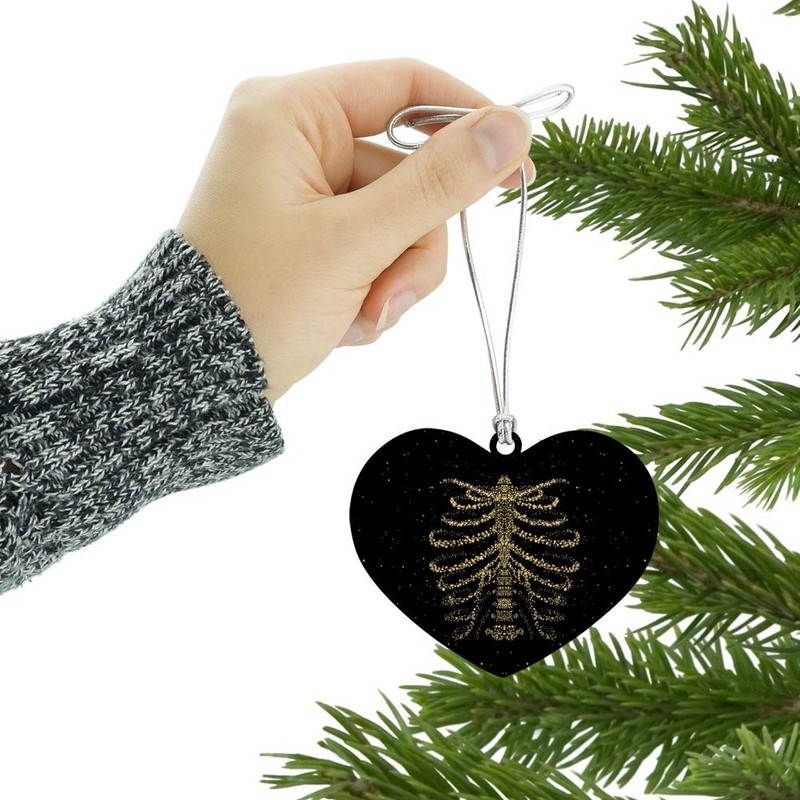 Rib Cage Skeleton Bones Stars Galaxy Heart Love Wood Christmas Tree Holiday Ornament