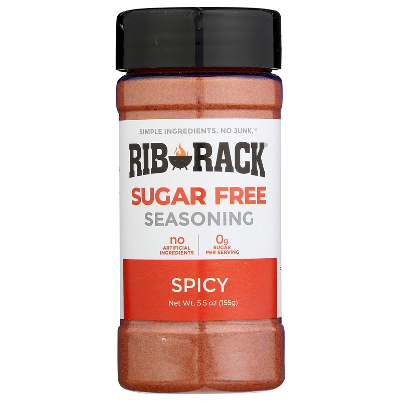 - Contains (1) 5.5oz bottle of Rib Rack Spicy Sugar Free Seasoning