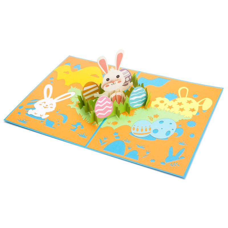 - EXCLUSIVE:The blue cover of the Bunny and eggs pop-up card depicts a delightful illustration of a bunny and many eggs.Open the pop-up card to reveal a 3D sculpture as majestic as the real thing. A bunny and many eggs pop out of the greeting card.The bunny is surrounded by many eggs.This pop up card is designed by Ribbli Studio.