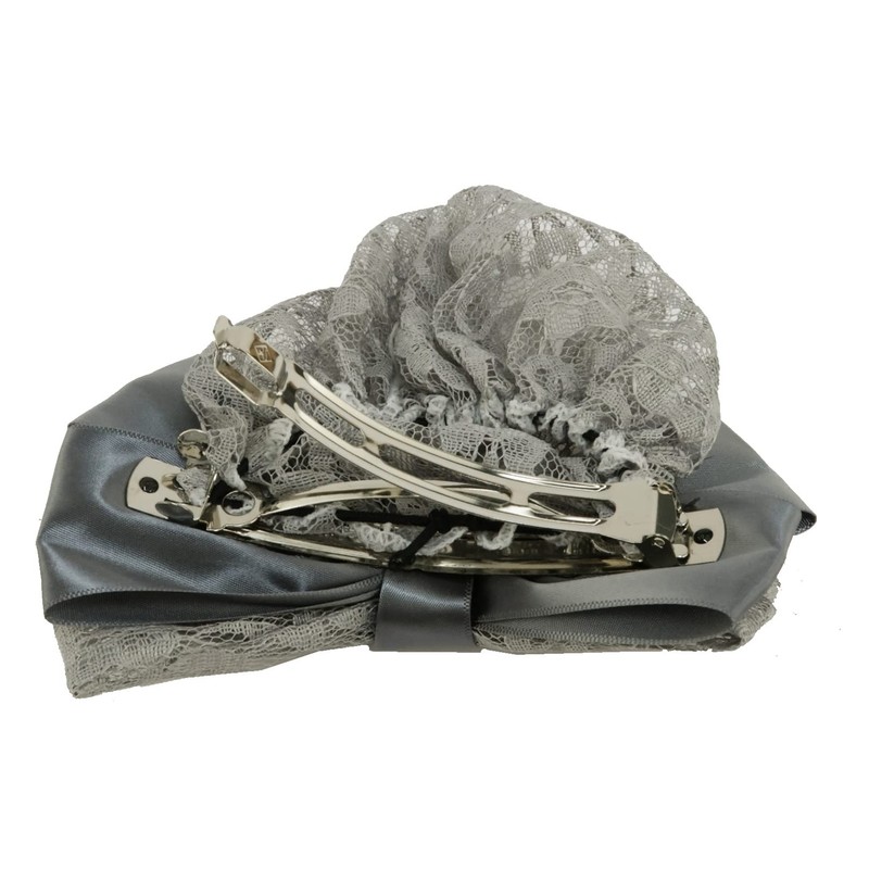 Ribbon Barrette with Cover (Grey) Flower Lace Braided Chignon for Adult Gray Hair