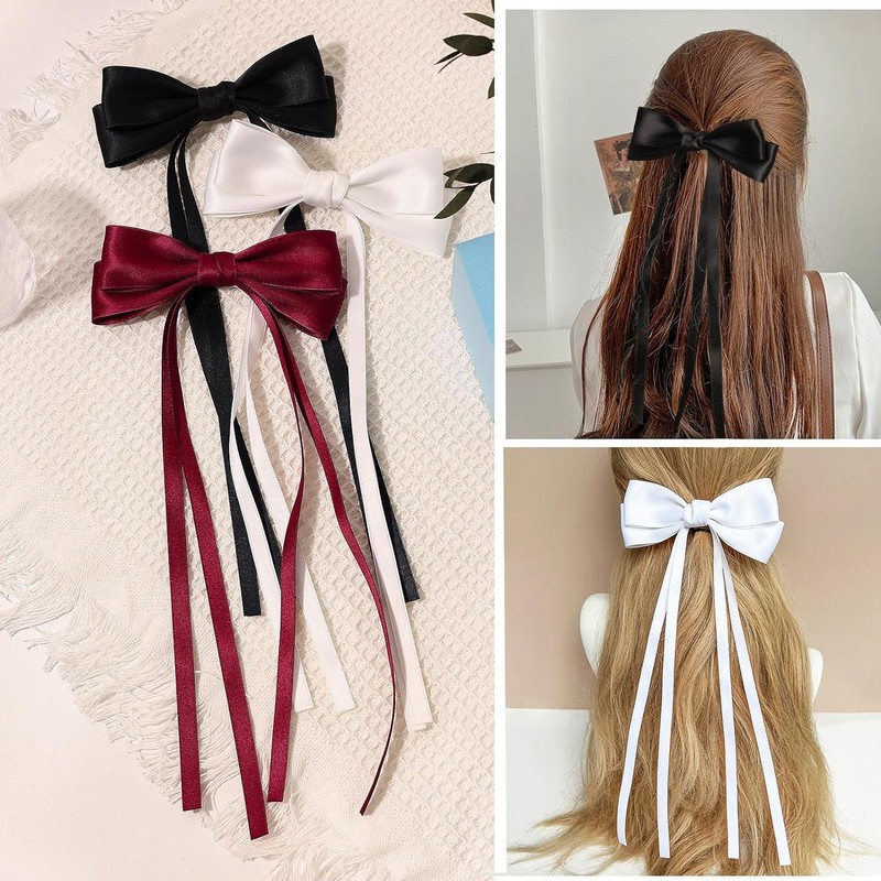 1. Vintage Elegance: Our hair bow has Classic satin bowknot with long ribbon, Long tail Barrettes combine with nice drooping Type, will make you look more charming. making you the most elegant protagonist at parties, weddings, banquets and more.