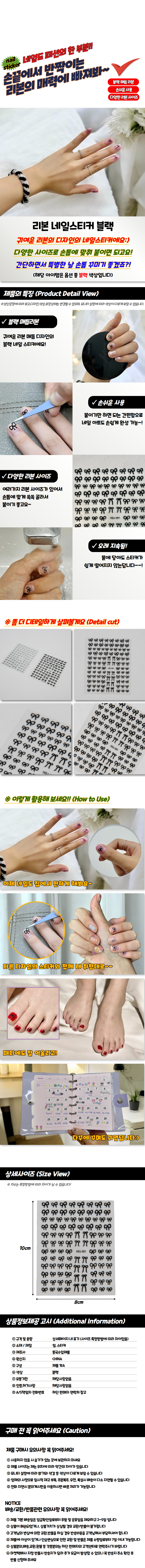 리본 디자인 네일 스티커 블랙 컬러 손톱 장식 셀프네일 아트