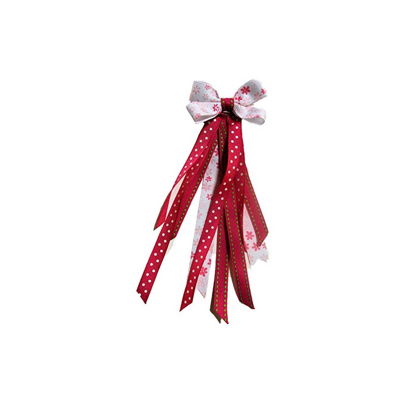 Ribbon Streamer Ponytail Holder Collection (Scrunchie, Pink & Green Flowers)