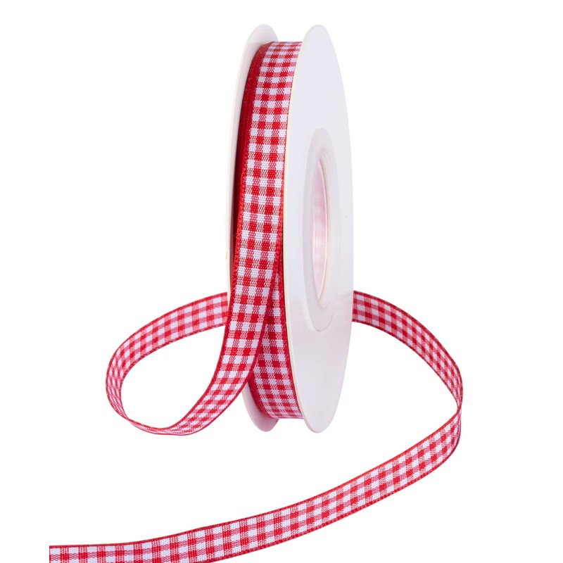 Ribbonitlux Width 0.3 inch (9 mm), Checkered Ribbon, Length 87.6 ft (22 m), Crafts, Clothing, Wrapping, Bowknot Ribbon #250 Red