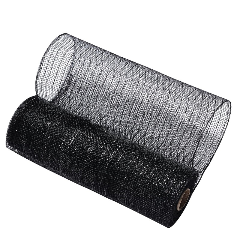 Ribest Black Deco Mesh Ribbon with Metallic Foil, 10 inch x 30 feet, for Christmas Tree Wreaths