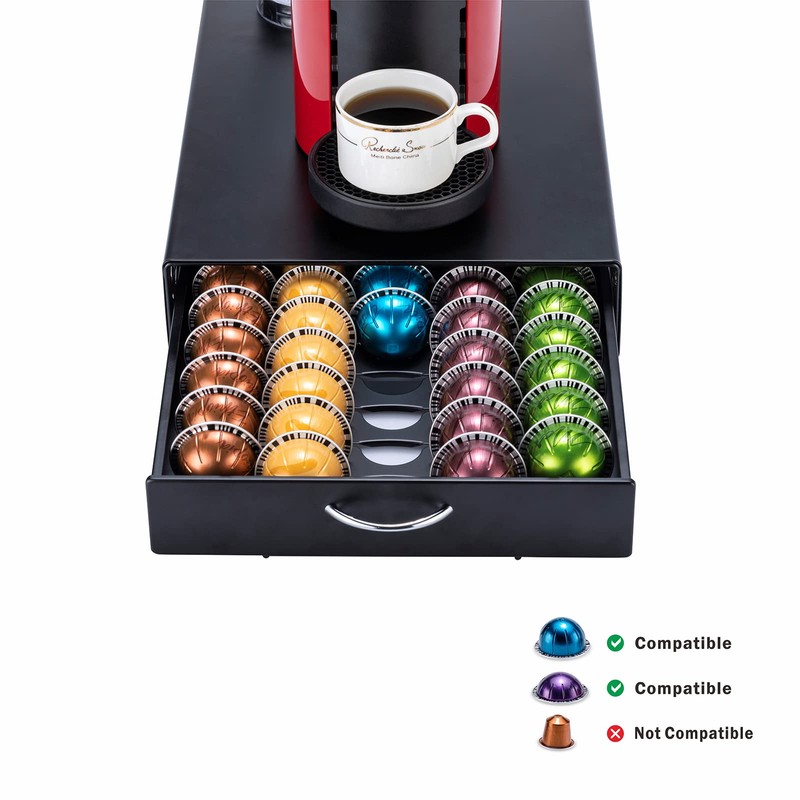• [Save Your Time]:Vertuo Capsule drawer’s front-to-back dividers allow for Four tidy rows of 10 and make it easy to organize, load, and remove the capsules.To classify vertuoline pods of different taste and size quickly,the coffee storage drawer is your best assistant!
