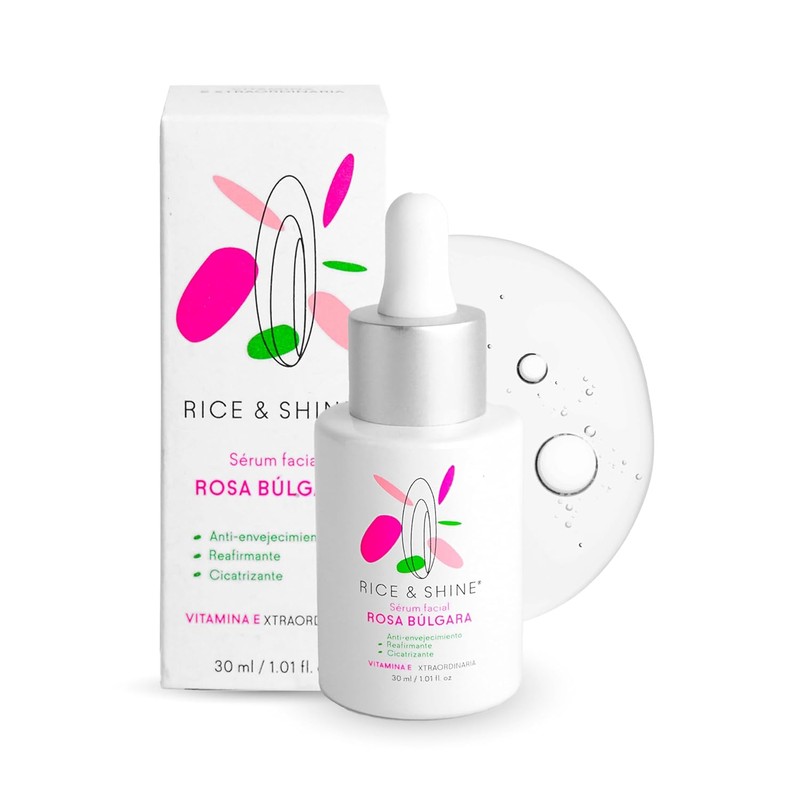 🌟 💄 RICE & SHINE | Serum Facial Acido Hialuronico y Rosa Búlgara | Skin Care Con 60% más Vitamina E que el Aceite de Argán - 100% Natural | Hidratante Facial | Skincare 💄 🌟