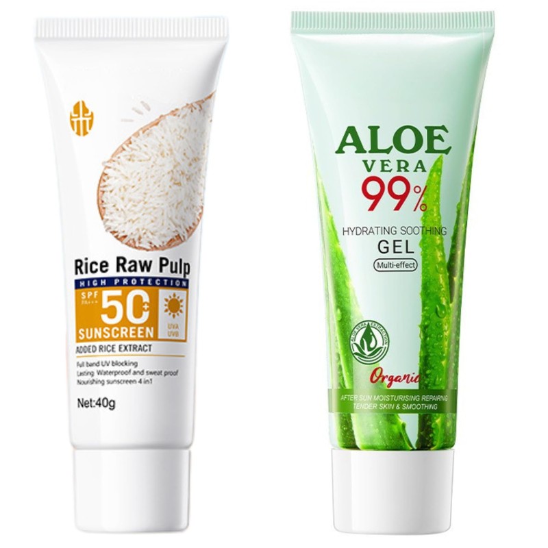 Rice Sunscreen 50ml + Aloe Vera Gel 40 ml, Sunscreen Set for Body