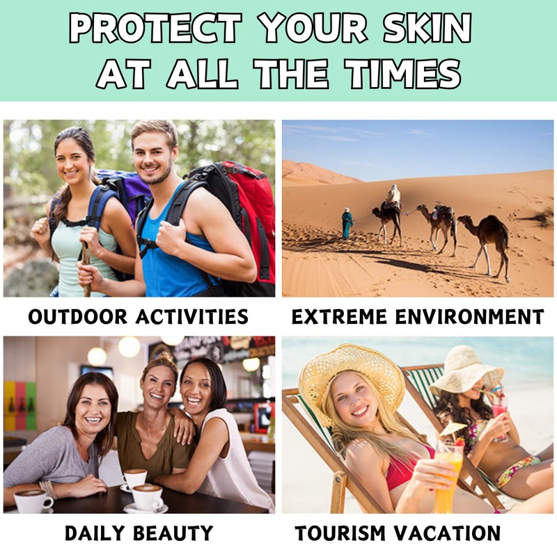 - Water & Sweat Resistant – Long-Lasting Sunblock: Designed for active lifestyles, this suncream face SPF 65 stays effective even in humid conditions. Whether swimming, running, or sweating under the sun, you can trust this face & body sunscreen to provide long-lasting, high-performance protection