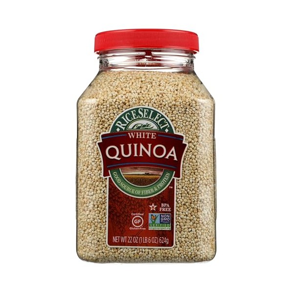RiceSelect White Quinoa, Premium Gluten-Free Seed, Star-K Kosher, and Non-GMO Quinoa, 22-Ounce Jar