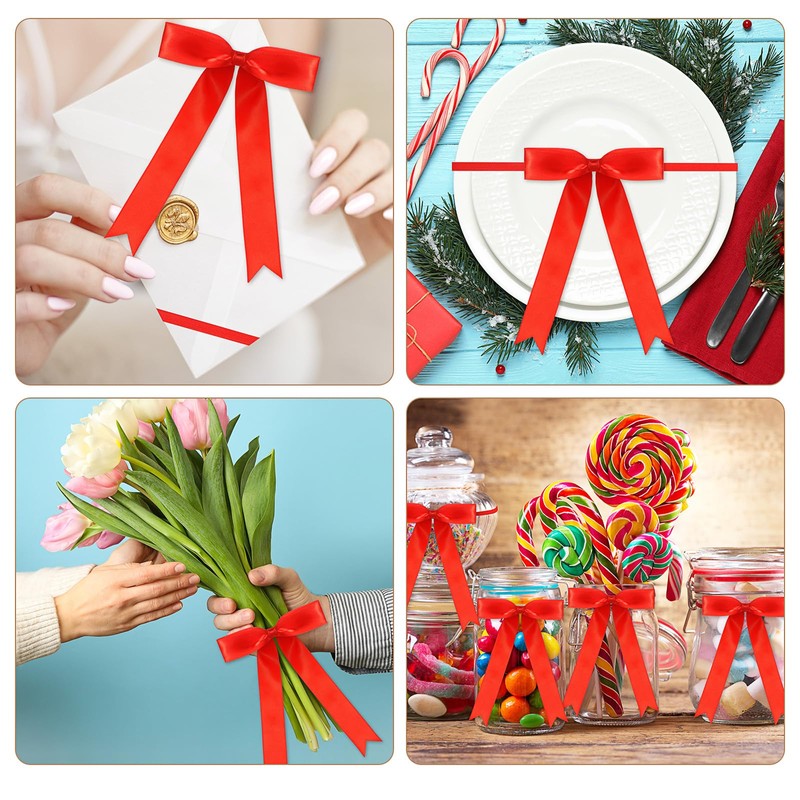 - Reliable Quality: made of satin ribbon material, these pretied ribbon bows with stretch elastic loops are lightweight, soft and comfortable to touch, not easy to tear or fade, easy to serve you for along time; You do not need to tie them, so easy to apply, no fuss, just loop around the box or gift, this makes for easy on and off, they are nice finishing touch to your gift, making your gifts more delicate