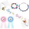 - Gender Reveals Party Supplies: you will receive 1 piece boy or girl gender reveal sash, 1 piece mom to be pin, 1 piece dad to be pin, 1 piece flower headband and 1 piece flower wristband, suitable for celebrating the arrival of the upcoming baby