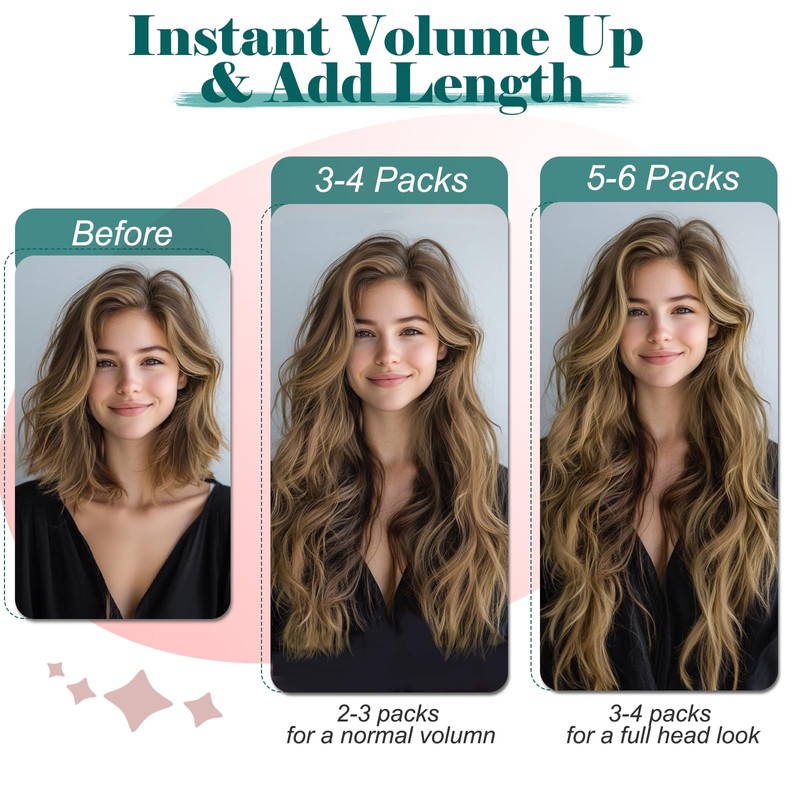 - 【Thin Weft Hair Extensions】- Rich Choices clip in hair extensions come in 5 pieces with 12 clips, including 2 spare clips. Exquisite packaging box is a great gift for girlfriends! Recommend buying two packs and more for better length and volume.