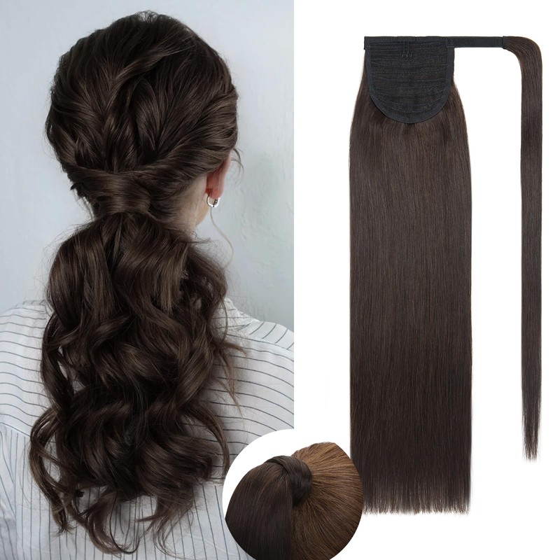 Rich Choices Ponytail Extension Human Hair Wrap Around Ponytail Hair Extension Straight 22 Inch #2 Dark Brown Hair Ponytail Extension Real Remy Human Hair Extensions Hairpieces for Women