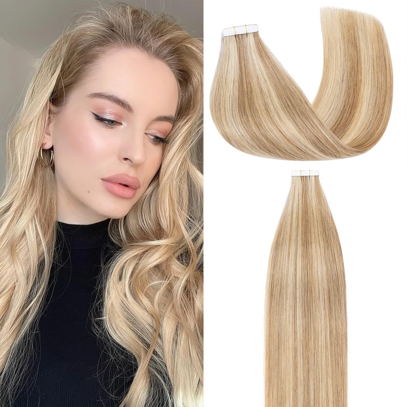 Rich Choices Tape Extensions Real Hair 55 cm Pack of 20 #12/613 Blonde Strands Real Hair Extensions Invisible Tape-In Extensions Remy Silky Straight Hair Extensions Natural Hair Thickening