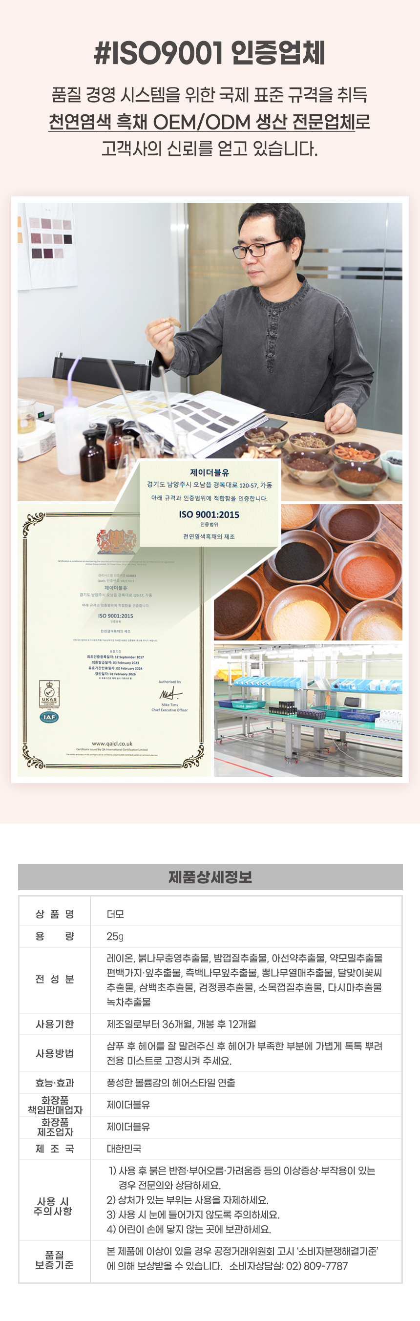 풍성한 머리결 흑채 천연증모제 더모솔루션 - 검정색