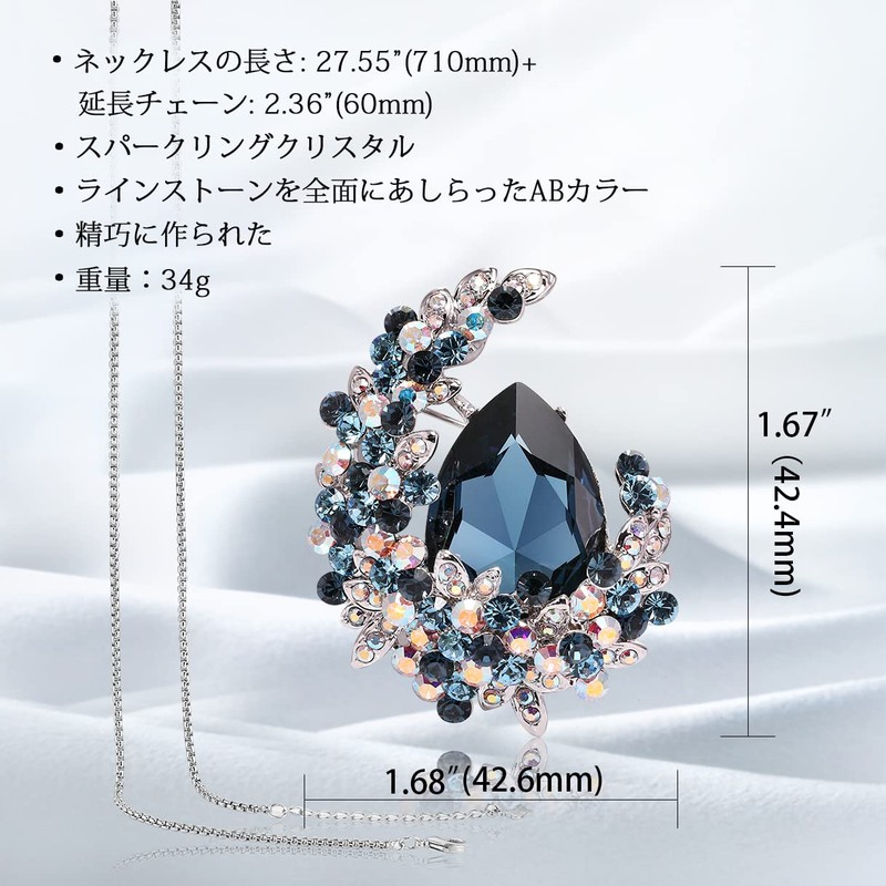 - Size: Pendant 1.7 x 1.7 inches (42.6 x 42.4 mm); Chain 28.0 + 2.4 inches (71 + 6 cm); 1.2 oz (34 g)A brooch and long necklace in one jewelry