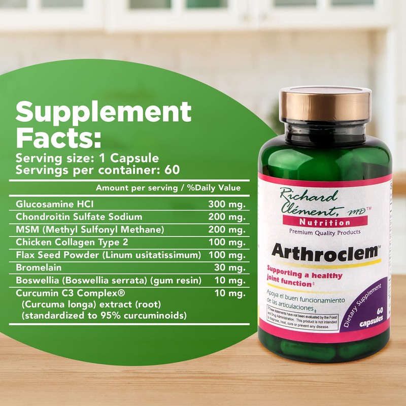 Richard Clement Nutrition - Arthroclem Joint Health Dietary Supplement, Advanced Joint Care with Glucosamine and Chondroitin for Optimum Joint Health, 60 Capsules, Exp. Date 10/31/2022