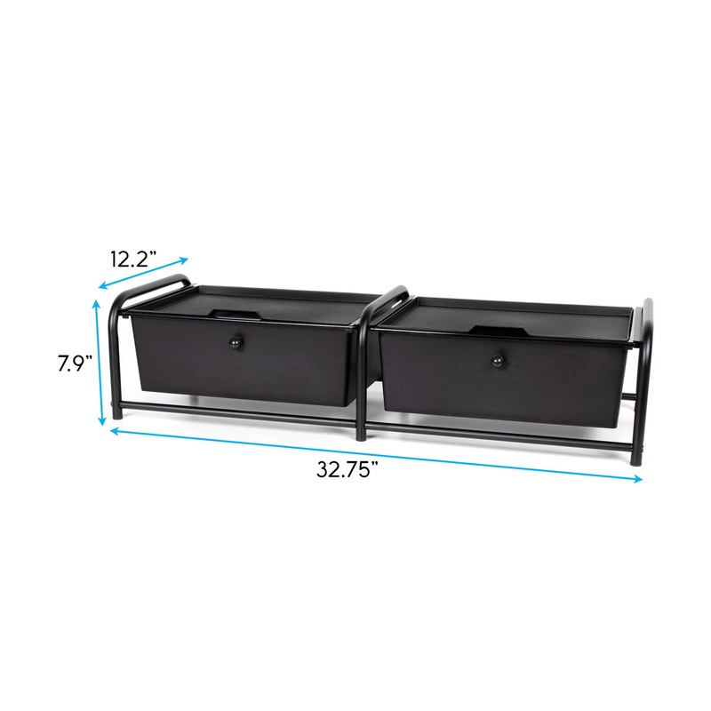 Richards Homewares Metal Frame Underbed Storage with Lids, 32.75”L x 12.2”D x 7.9”H, Requires at Least 8”H Clearance from Floor to Bed Frame, Black, 2-Drawer