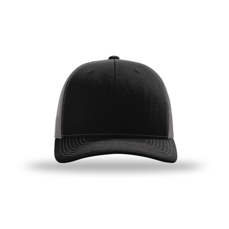 Richardson 112 Trucker Hat - Premium Blank Baseball Cap, Adjustable Snapback Hat - Structured Six Panel Richardson Blank Hats - Black/Charcoal