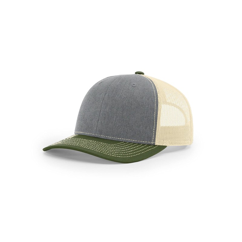 RICHARDSON Snapback Trucker Cap Adjustable Heather Grey/Birch/Army Olive, One Size