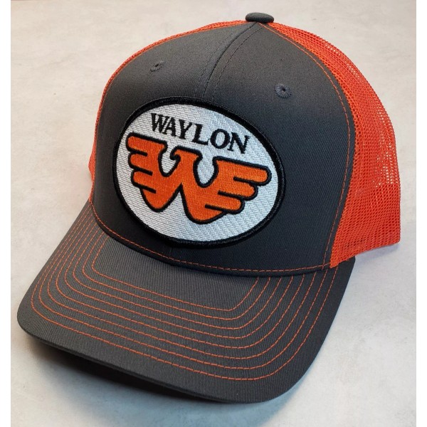 Richardson WAYLON JENNINGS Patch on Richardson 112 Trucker Hat Snapback Charcoal/Orang