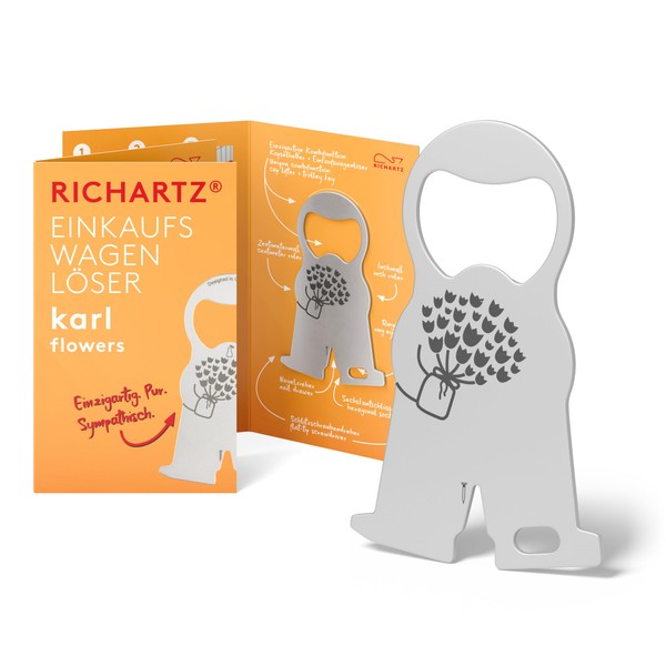 RICHARTZ Karl Flowers Shopping Trolley Remover | Multitool Key Ring | 9 Practical Functions | Matt Blasted Stainless Steel | Key Ring Tool with Function Description