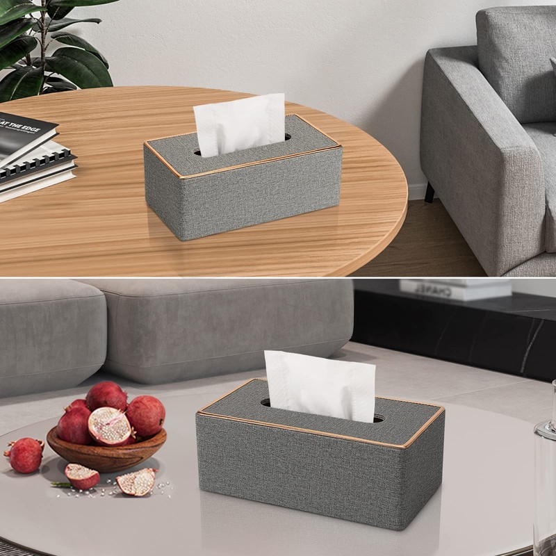 - High Quality Materials: The surface is made of high quality PU leather. Durable and long lasting. The surface is waterproof and stain resistant, easy to clean, just wipe clean with a wet towel or wet tissue. Made of leather + wood with a moderate weight to keep the box from lifting up and out of the tissue smoothly