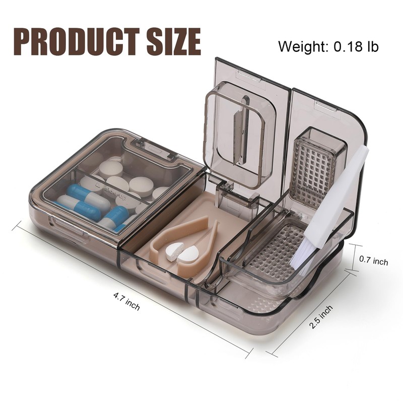 - 【3 in 1 Multifunctional Medicine Kit 】 RICHCEE 3-in-1 multifunctional pill cutter is equipped with 3 functions of cutting, grinding and storing pills, it can well meet all the needs of daily medicine.You don't have to buy separate cutters and crushers, it can easily solve various problems with taking medicines, which is more convenient and practical.With the pill cutter, you will easily be able to cut tablets so that you can get the right measurement of dosage.