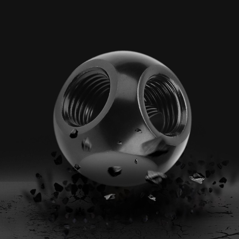Brass material is for long-term use. Suitable for PC water cooling application. Spherical appearance is exquisite. 3-way (T type) threaded holes can change the way of cooling water by 180°. The thread is G1/4.