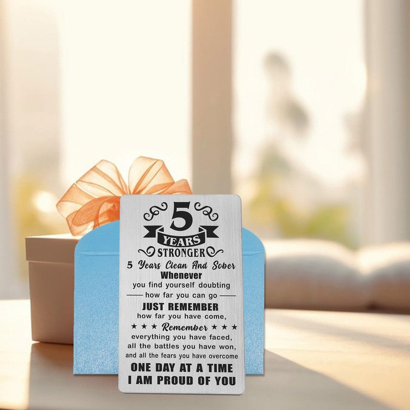 - Unique 5 Years Sober Gift Ideas: Packaged in an elegant envelope, our 5 year sobriety card makes a personalized gift for loved ones who are looking to stay motivated and focused on their goals. Great way to show your support and encouragement