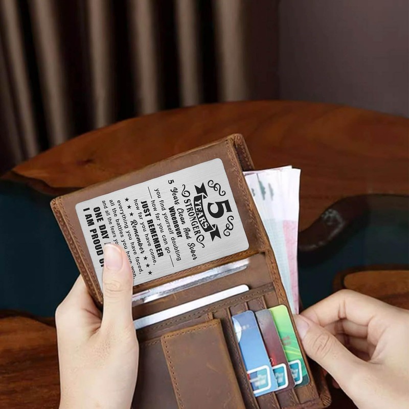 Richesele 5 Years AA Sobriety Gifts - Five Years Stronger and Sober Card - Insipirational Addiction Recovery Engraved Wallet Cards Token