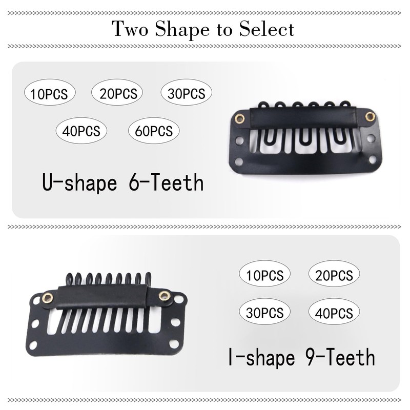 - 【Professional Design】U-shaped wig clips to secure wig no sew are designed with 9 teeth and small holes, which will provide convenience to attach or sew clip in hair extensions in a short time.