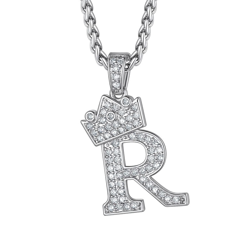 - Design: Bling brilliant cut simulated diamond cubic zirconia crown alphabet necklace for men women,capital letter pendant with wheat chainInitial necklace is always connected to names,you can give it to someone with this letter in his/her name,it will be a great gift