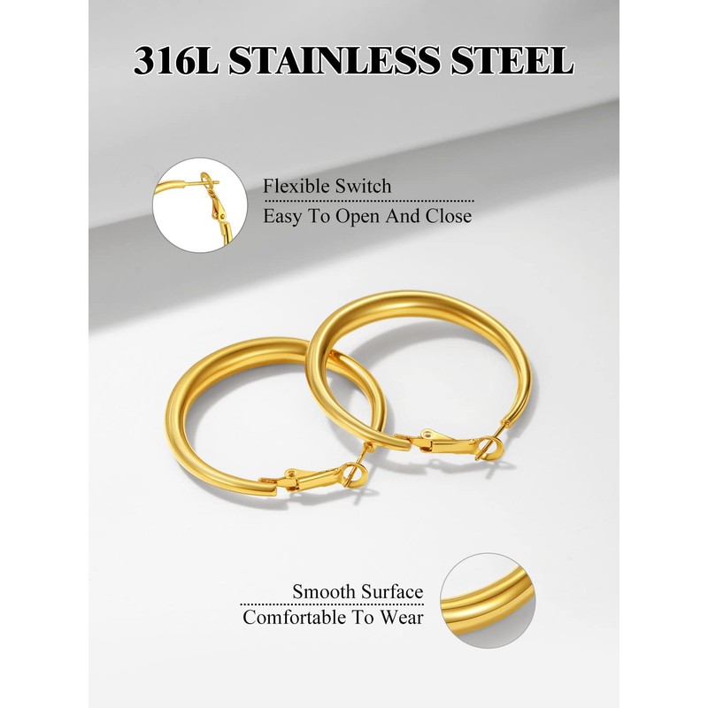 - 【Small Hoop Earrings】 Gold Plated Finish 316L Surgical Stainless Steel Hoop Earrings, Gold Plated Stay Long Lasting and Don't Fade Easily. High Quality Material with High Polish Finish, Sturdiness and Comfortable to Wear. Very Effective for Sensitive Ears
