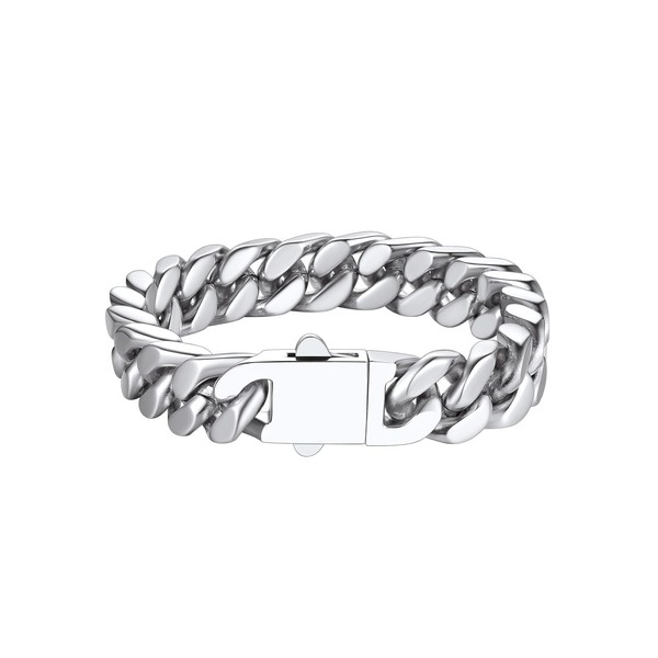 Richsteel Mens Bracelets Silver Chunky Bangle Cuban Link Bracelet For Boys