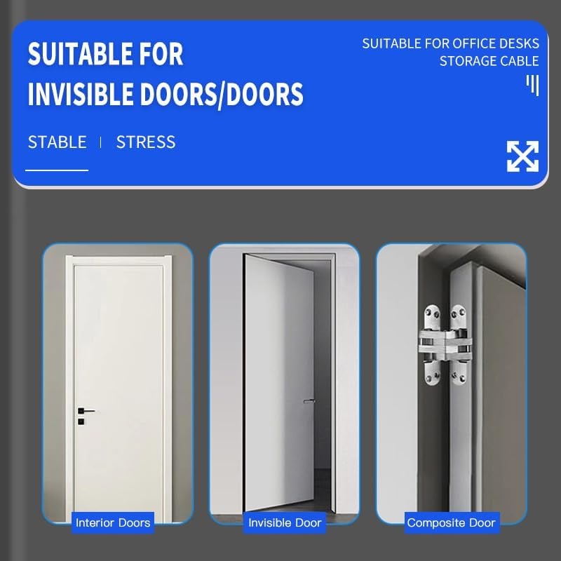 - Unique Invisible Design: These invisible hinges can silently open at multiple angles, with a maximum opening angle of 180 degrees. They will be hidden when closed.