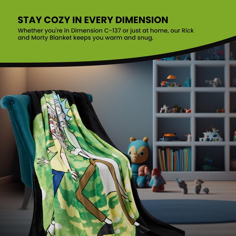 - Official Rick and Morty Merchandise - This throw blanket is officially licensed Rick and Morty merchandise and perfect for any fan of the show who wants to combine their fandom with comfort