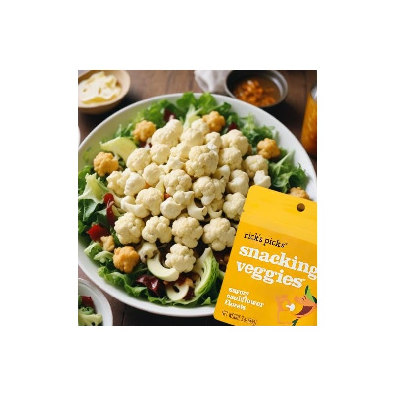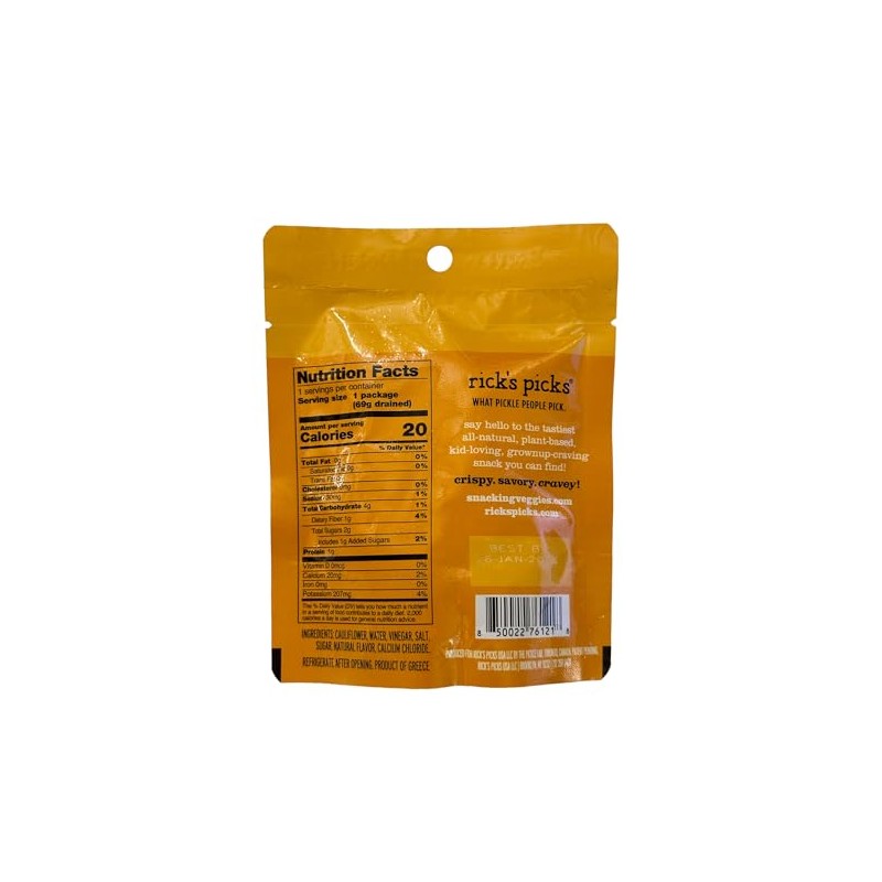 Rick's Picks Caulifower Pickle In A Pouch - Low Carb Snacks, Vegan Gluten Free Snacks, Healthy Snacks for Kids and Adults, Keto Snacks, Low Calorie, Diabetic Snacks (3 Pack)