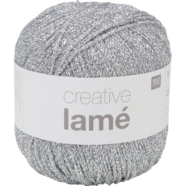 Rico Design Creative Lamé yarn with a length of approx. 135 m and a weight of approx. 25g The glittering yarn can be processed as an accent and elegantly combined with classic standard colours. Needle size 2.5-3.5 is recommended.