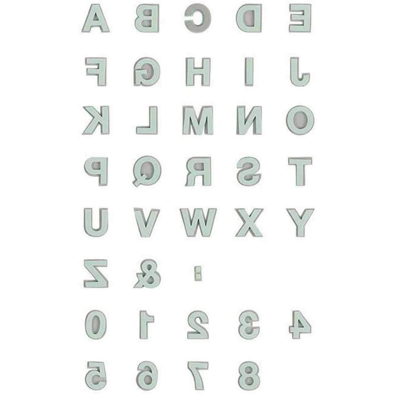 - INHALT - Set mit Buchstaben A-Z, Zahlen 0-8 (6=9), Doppelpunkt und &-Symbol
