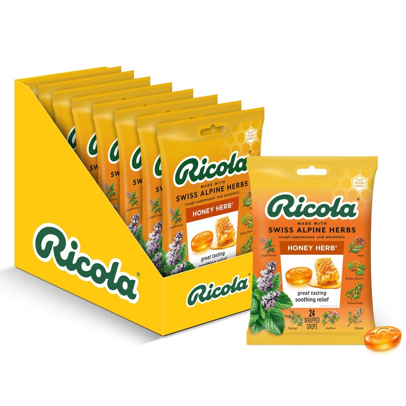 - Delicious and effective soothing throat drops are in Ricola's signature cube shape and contain our unique blend of 10 herbs cultivated in Switzerland