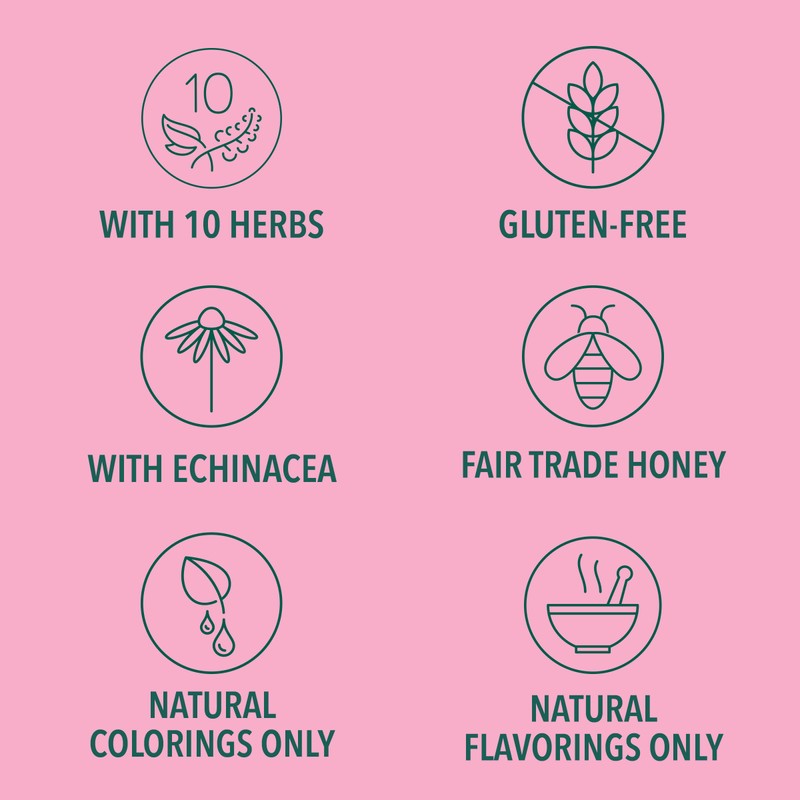 - Soothing blend of Fair Trade honey, Echinacea and lemon balm