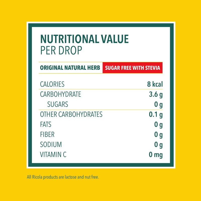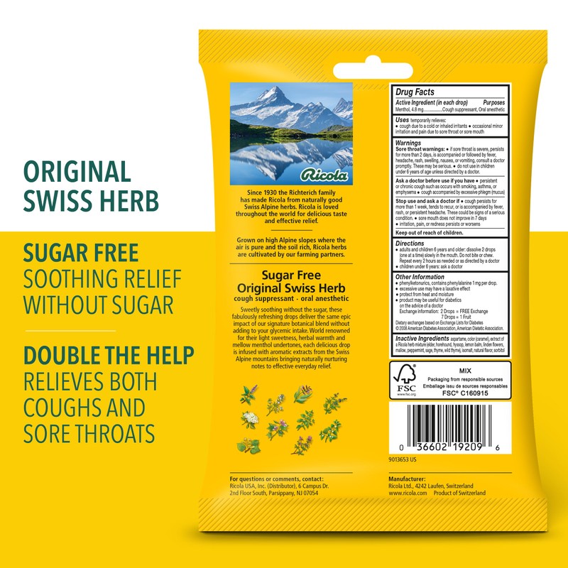 - Drops with Ricola's pleasing herbal taste are suitable for diabetics and made with 4.8mg of natural menthol for soothing cough relief that the whole family will enjoy.